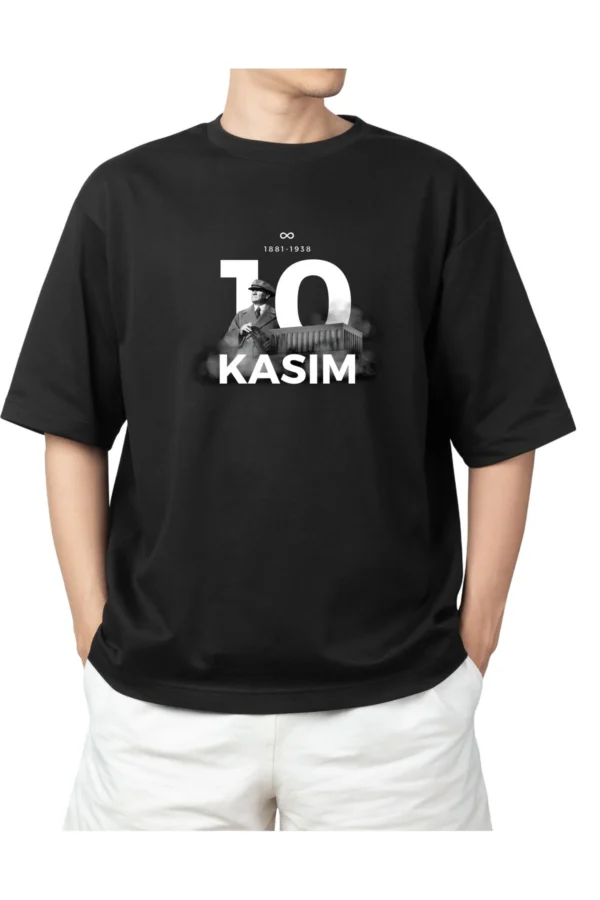 – 10 Kasım Mustafa Kemal Atatürk özgün tasarımıyla öne çıkan bu t-shirt, siyah rengiyle her ortamda şıklığınızı korumanızı sağlar.; – Oversize kalıbı sayesinde rahat bir kullanım sunar ve günlük giyim için idealdir.; – Pamuklu kumaşı, yumuşak dokusuyla cildinize nazikçe dokunurken konforlu bir deneyim yaşatır.; – M bedeniyle geniş beden skalası sunarak farklı vücut tiplerine uyum sağlar.; – Yetişkinler için uygun olan bu t-shirt, unisex koleksiyonun bir parçası olarak herkes tarafından tercih edilebilir.; – Pamuklu materyali sayesinde nefes alabilir yapıda olup gün boyu konforlu hissetmenizi garanti eder.; – Bisiklet yaka tipi ile modern ve sade bir görünüm sunarken, dijital baskı teknolojisi canlı ve net desenlerin kalitesini artırır.; – Dijital baskı tekniği sayesinde uzun süreli kullanım sonrasında bile renklerin solmasını önler.; – Sürdürülebilirlik detayına sahip olmasıyla çevre dostu tercihleriniz arasında yer alırken aynı zamanda kaliteli malzemelerle üretilmiştir.; – Tüm yaş gruplarına hitap eden bu t-shirt, herkesin gardrobunda yerini almayı hak ediyor.;
