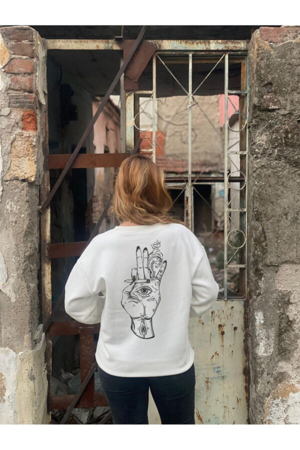 EL MOTİF İÇİNDE GÖZ DETAYLI BASKILI 3 İPLİK ŞARDONLU SWEAT T.SHİRT