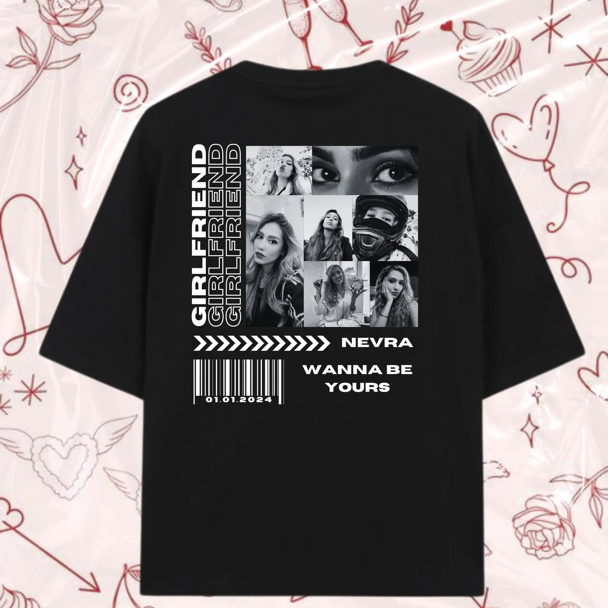 Gırlfriend Baskılı Kişiye Özel Tasarım Penye Kalite %100 Pamuklu Relax Kalıp T-Shirt
