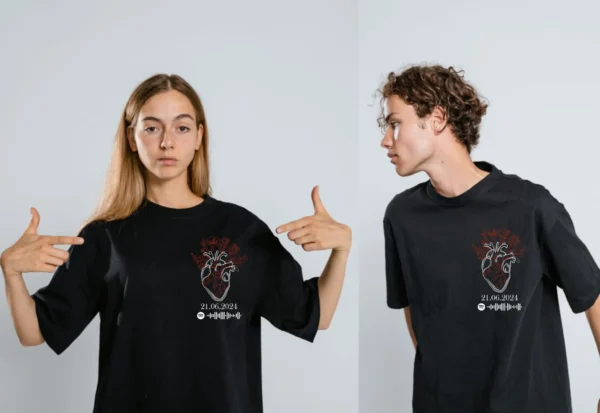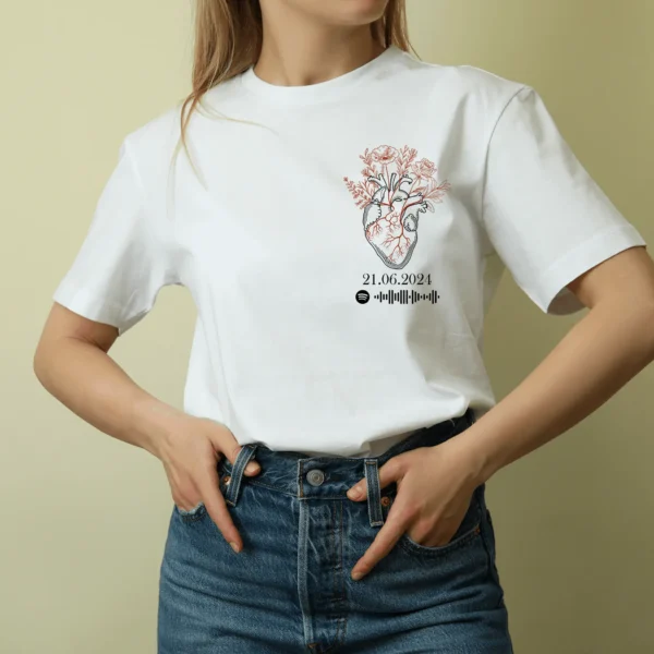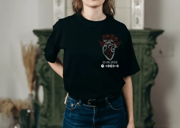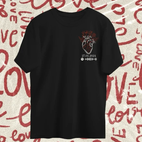 💖 Kalbinizin Üzerinde Sevginizi Taşıyın!💖Tutto Up Store tasarımları, samimi bir anlam taşıyor. 🌟Sevdiğiniz kişi ile güzel anınızın tarihini ve sevginiz şarkıyı kalbinizin üzerinde ölümsüzleştirmenin şık yolu💝Pamuklu tişörtlerimizle, her anı ve öz…