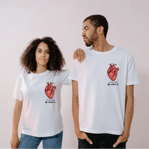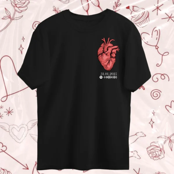 💖 Kalbinizin Üzerinde Sevginizi Taşıyın!💖Tutto Up Store tasarımları, samimi bir anlam taşıyor. 🌟Sevdiğiniz kişi ile güzel anınızın tarihini ve sevginiz şarkıyı kalbinizin üzerinde ölümsüzleştirmenin şık yolu💝Pamuklu tişörtlerimizle, her anı ve öz…