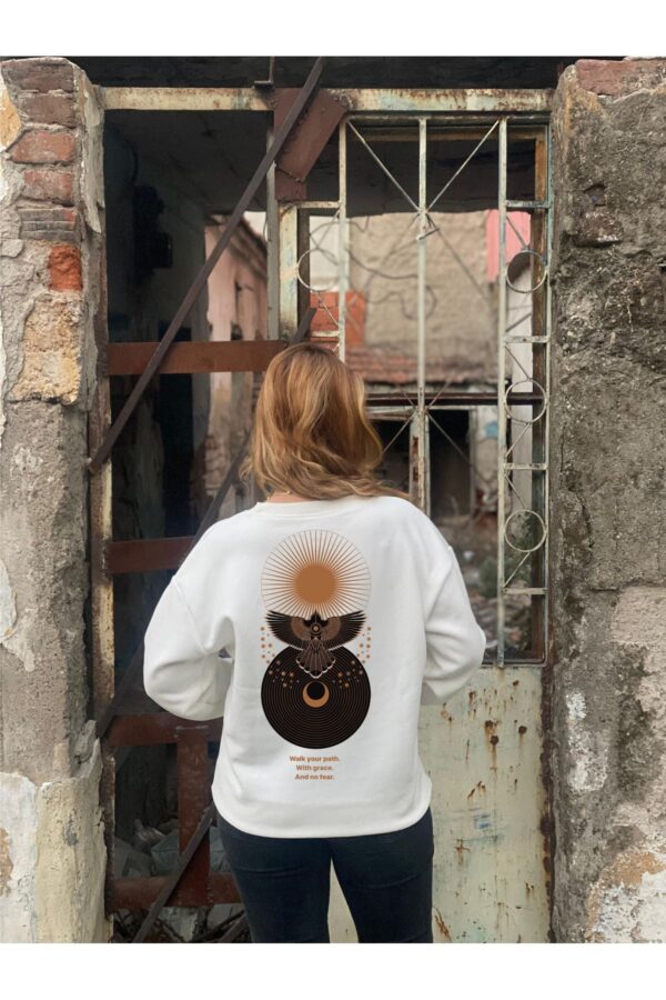 KUŞ MOTİF DETAYLI BASKILI 3 İPLİK ŞARDONLU SWEAT T.SHİRT