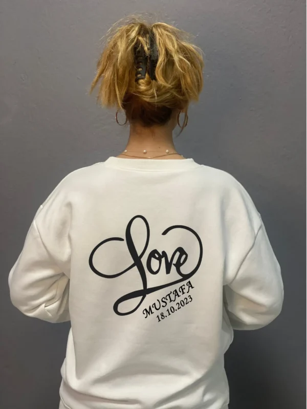 LOVE FİGÜRLÜ BASKILI 3 İPLİK ŞARDONLU SEVGİLİ SWEATSHİRT TEK ÜRÜN
