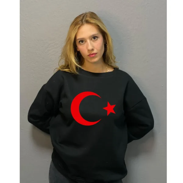 Türk Bayraklı Özel Baskılı Tasarım 3 İplik Şardonlu Oversize Sweatshirt