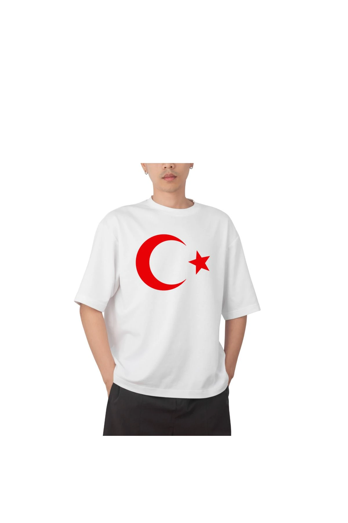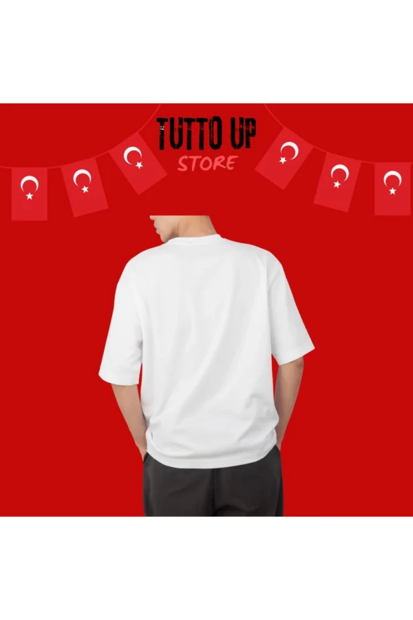 Türk Bayraklı Özel Baskılı Tasarım Oversize Beyaz T-Shirt