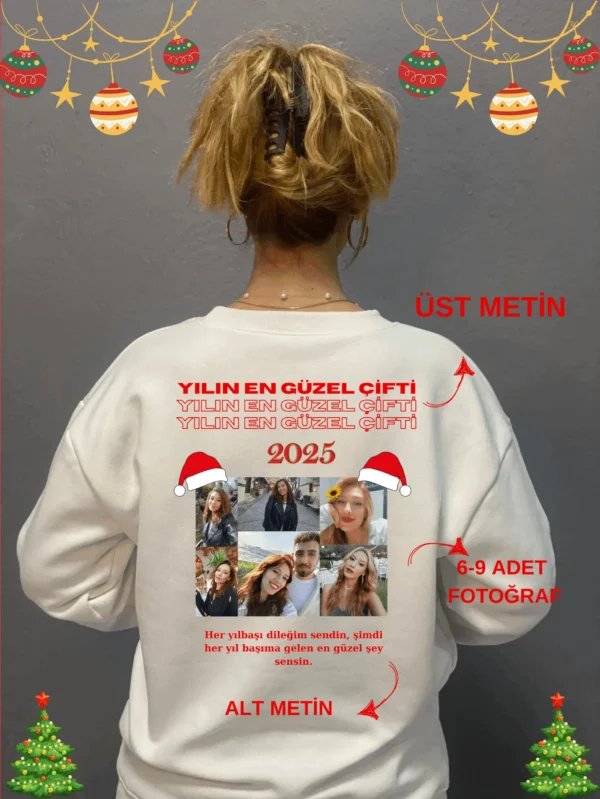 Yılın En Güzel Çifti Baskılı Yılbaşı Hediyesi 3 İplik Sweatişört