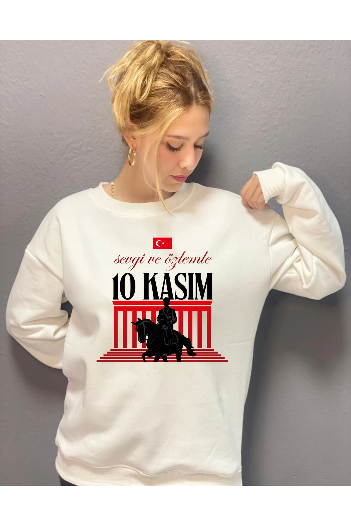 10 KASIM MUSTAFA KEMAL ATATÜRK FİGÜRLÜ BASKILI 3 İPLİK ŞARDONLU SWEAT T.SHİRT