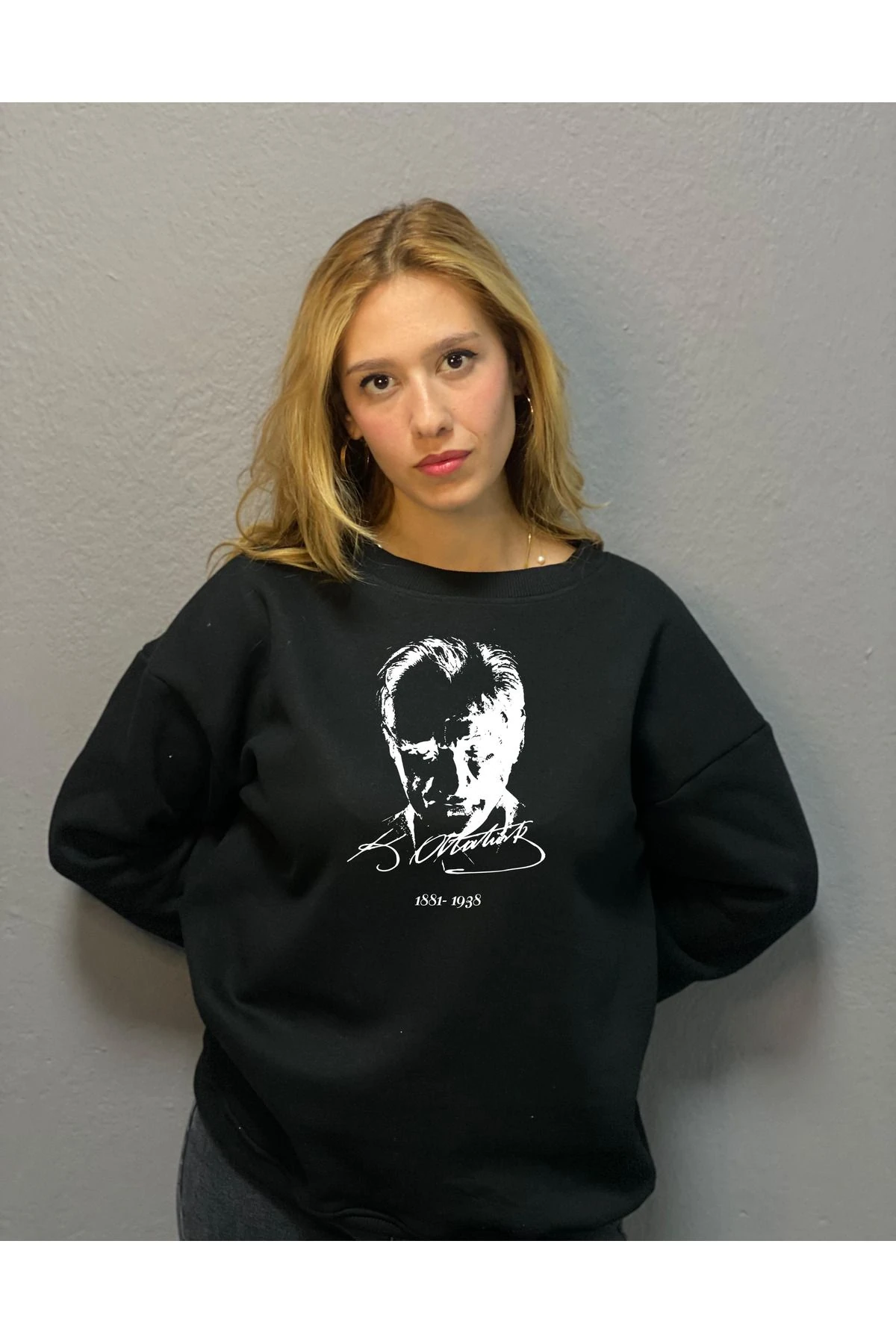 10 KASIM MUSTAFA KEMAL ATATÜRK FİGÜRLÜ VE İMZASI BASKILI 3 İPLİK ŞARDONLU SWEAT T.SHİRT