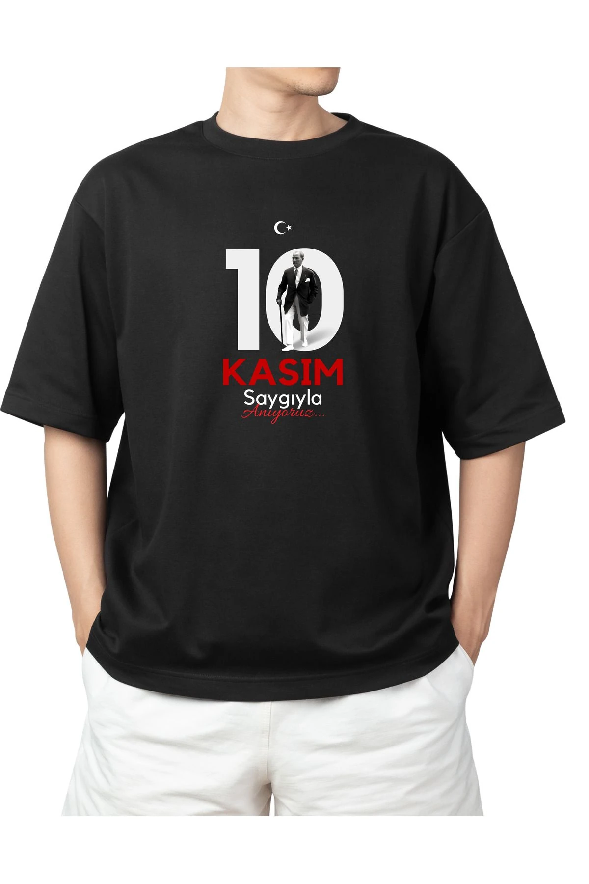 10 Kasım Mustafa Kemal Atatürk Özel Baskılı Tasarım Oversize Siyah T-Shirt