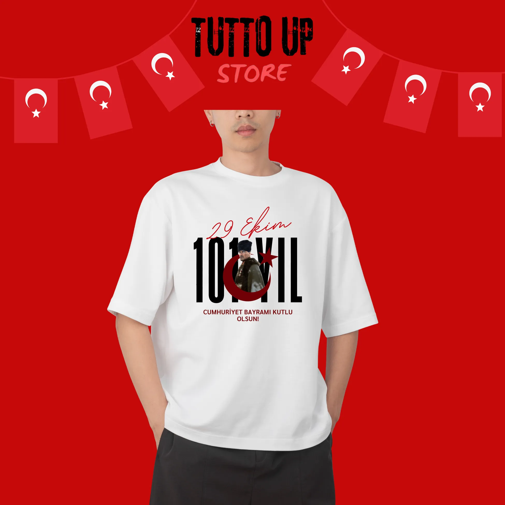 29 Ekim Atatürk Görsel Baskılı Özel Tasarım Oversize T-Shirt