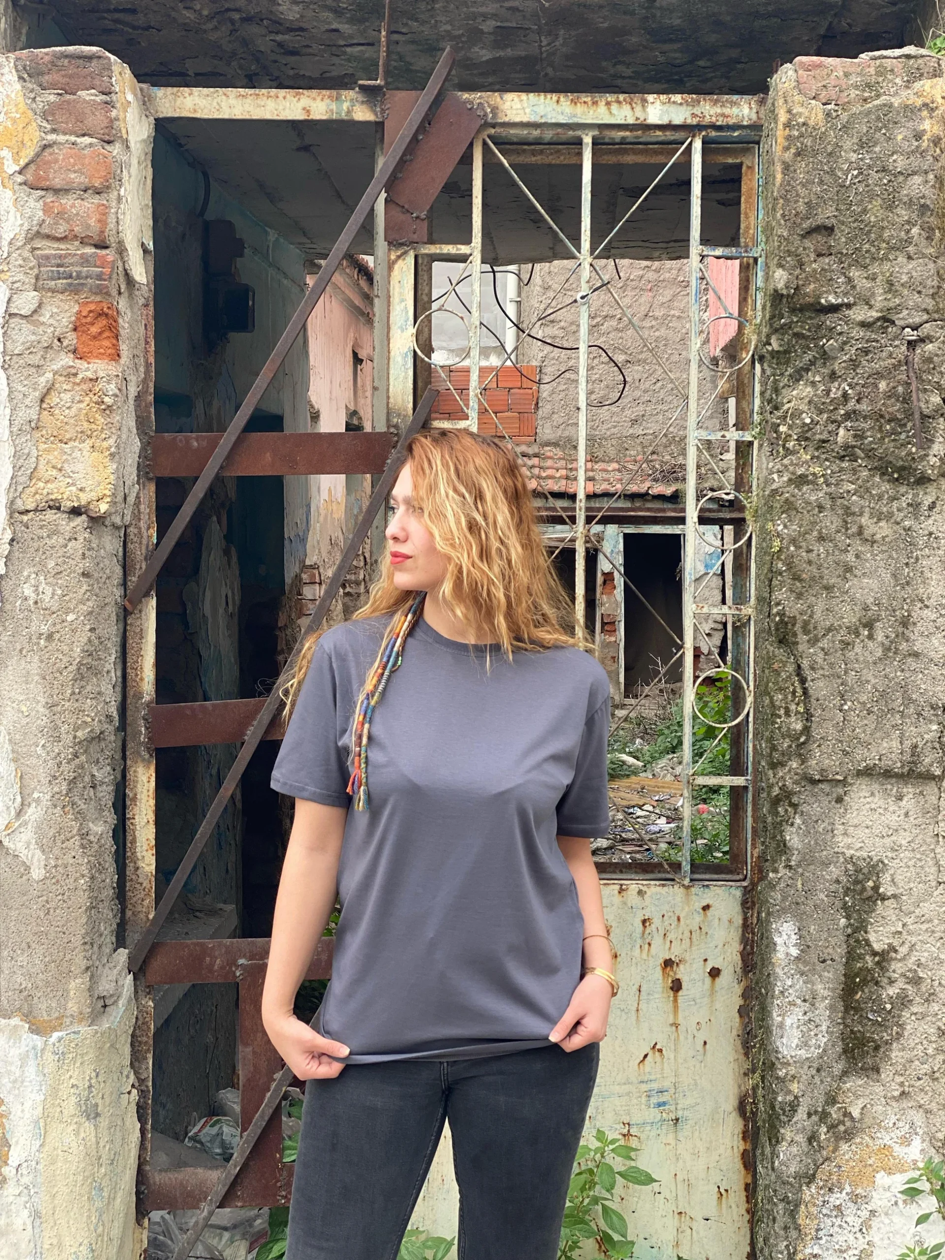 Antrasit Renk Penye Kalite %100 Pamuklu Relax Düz T-Shirt